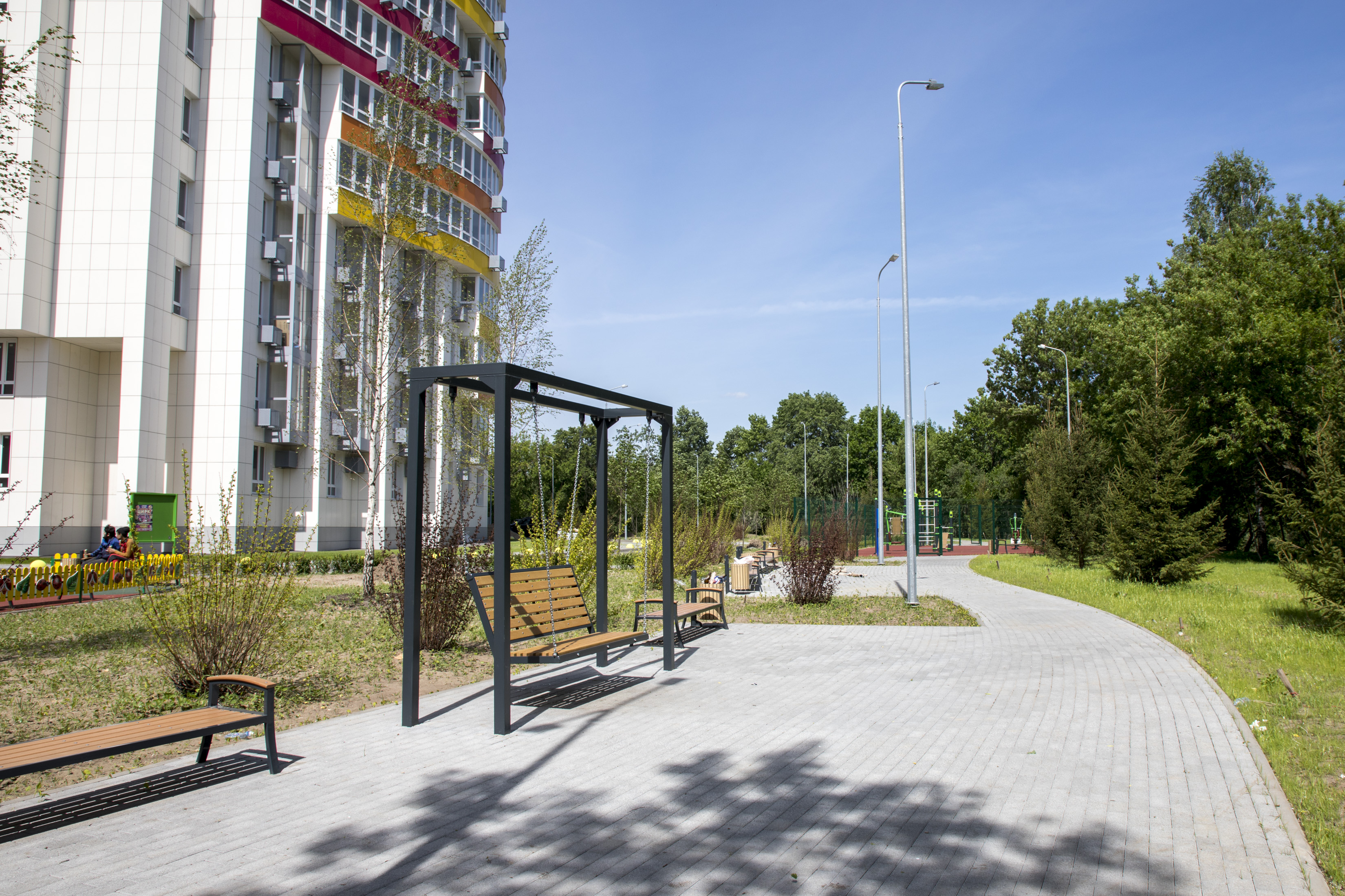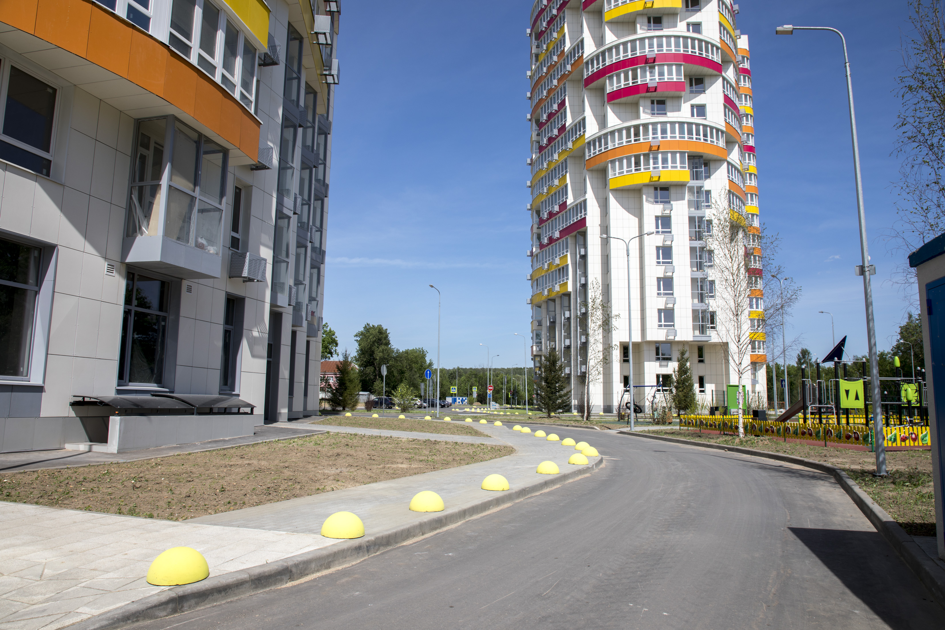 Из окон домов видны река Клязьма и окружающий парк. Рядом уже есть вся необходимая инфраструктура, оборудованы детские площадки, предусмотрено большое количество парковочных мест.